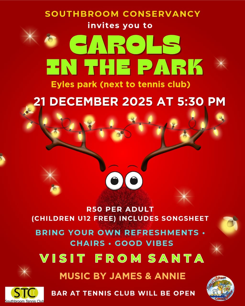 🎄✨ Join us for a festive Southbroom evening under the stars! Bring the whole family to Eyles Park (next to the tennis club) on 21 December at 5:30 PM for Christmas carols, good vibes, and a special visit from Santa 🎅💫 🎶 Enjoy music by James & Annie 🍹 Bring your own refreshments, chairs & […] |